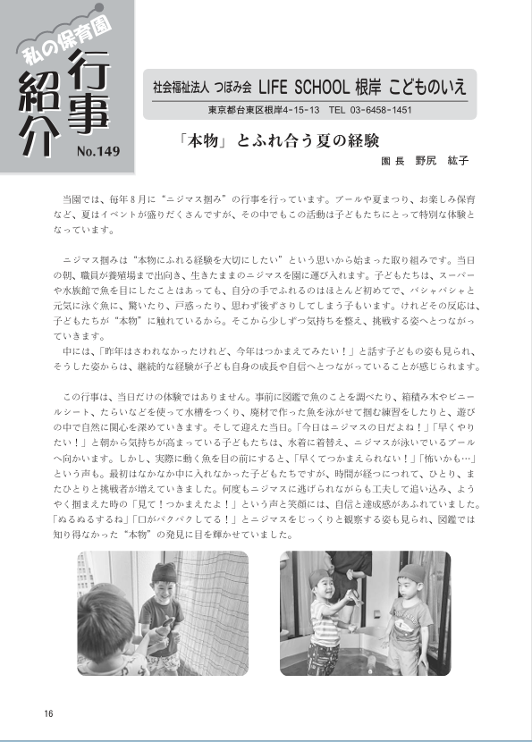 東京都民間保育園協会の広報誌にて、LIFESCHOOL根岸こどものいえの取組みが紹介されました!